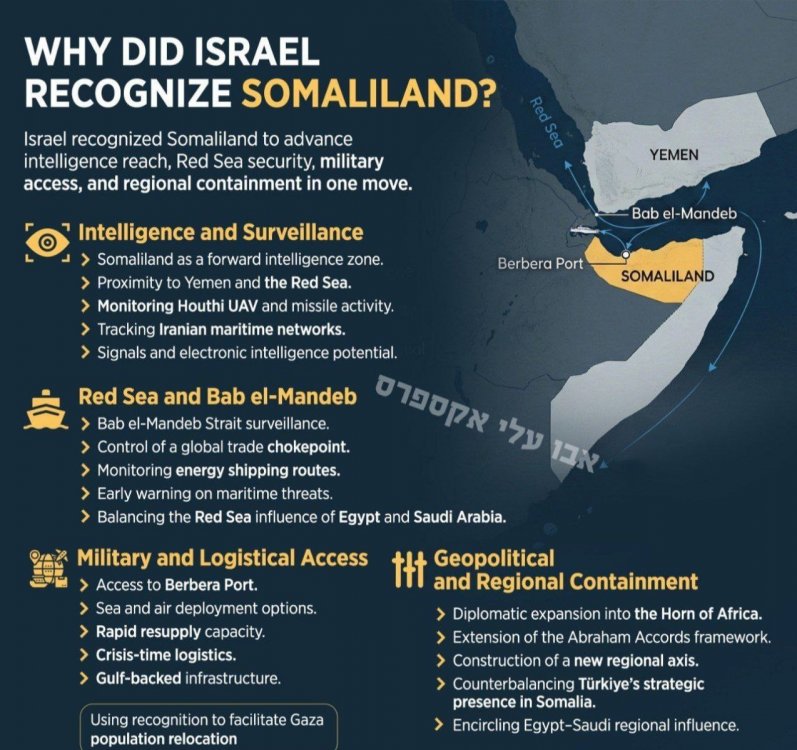 Ну тут такое произошло .... Сомали развалилось на кусочки . Образовалось новое государство Сомалиленд. Израиль тут же признал государство Сомалиленд. Сейчас прочёл название гимна Сомалиленда .. «Жить в вечном мире» Они видимо очень устали от войн … и климат у них тяжелый …🤷♂️ И тут же Турция активировалась и расскусила планы сионистов . И похоже отгадали!! Не можем не согласиться, молодцы, умнее, чем иранские коллеги. Надо пологать это не просто признание, это Израиль помогал в создании этого государства. Пердоганчик наверное кризу схватил Только для турок - это всё плохо. А для Израиля - хорошо. А что хорошо для Израиля, хорошо для всей Земли. Ох и воооони будет от ООН. Могу себе представить. Израиль голос подал!!! Осудить кебеням срочно!!!!! НОВОГОДНИЙ ООН